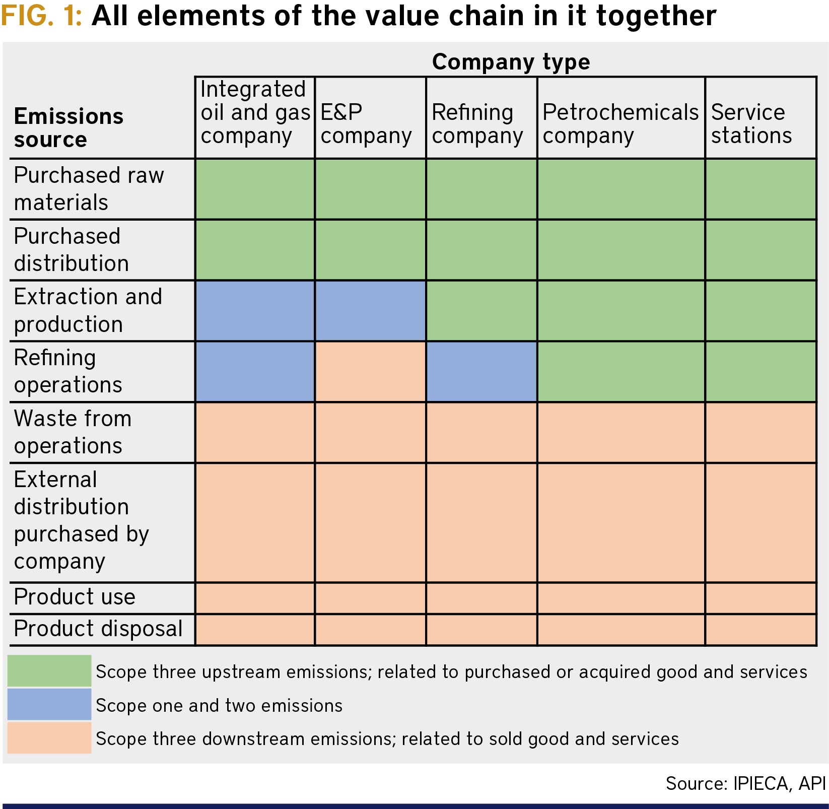 Work by the London-based oil and gas industry environmental and social performance lobby group IPIECA and the US’ API dating back as far as 2016 suggests, though, there is an understanding that all elements of the chain—be they independent producers, refiners or petrochemicals firms and distributors, or integrated companies that fulfil more than one or all of these functions—are on the hook for scope three emissions (see Fig.1). What needs to be thrashed out is how those responsibilities will be assigned.