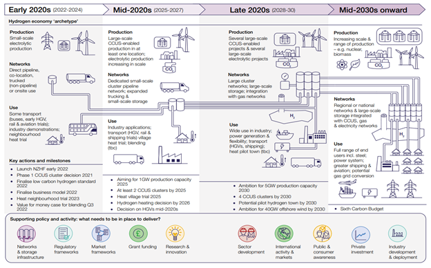 The government considers the adoption of hydrogen as a core component for delivering emissions reductions and intends for the UK to become a global hydrogen leader by 2030.