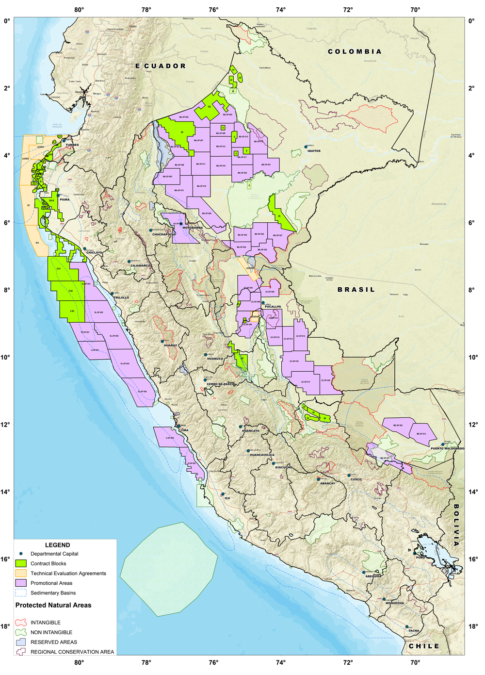 The selection of the promotional areas has been based on rigorous technical criteria, including the availability of technical information, geological prospectivity, the existence of plays, leads, and prospects, proximity to proven hydrocarbon deposits, and available logistic facilities. The selected areas are located in the Marañon, Huallaga, Ucayali, Madre de Dios, Salaverry, Trujillo, Lima, and Pisco basins.