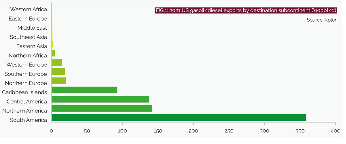 October’s US-sourced Latin American diesel/gasoil imports averaged 962,000bl/d, off August’s 1.13mn bl/d record high but well above the 710,000bl/d 2021 average. This is hardly surprising as the US has long been the region’s most important source of petroleum product deliveries.