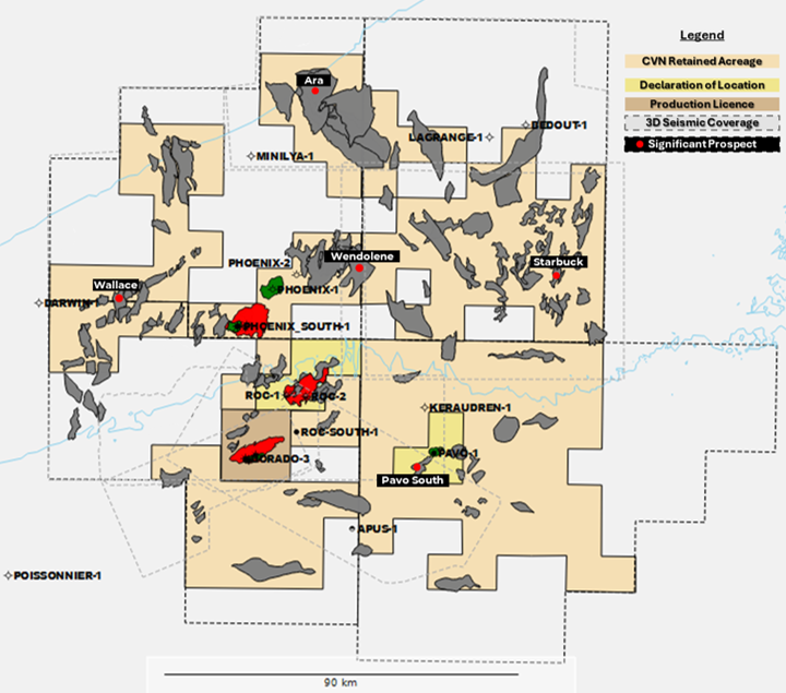 One of the well candidates is Ara-1, within Carnarvon’s WA-435-P permit area. Located north of the Dorado and Pavo oil discoveries, the Ara prospect is estimated to contain more than 549bcf of gas and 91m bl of condensate (Pmean, gross).