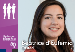 | Beatrice d'Eufemia joined Orsted on the company's graduate programme and has since been involved in innovations varying from offshore operations to O&G platform electrification. She is now a lead business developer for the company's UK and Ireland power-2-X division, designing customer-led solutions towards a green hydrogen future and unlocking value in the journey towards a green energy future. |